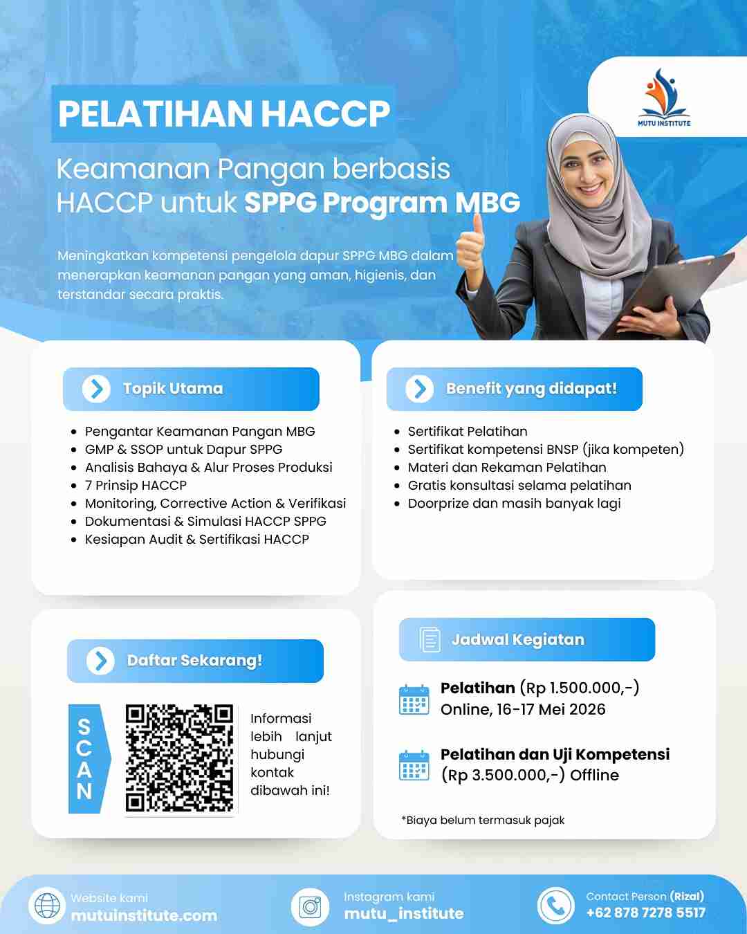- Instagram: Ikuti @mutu_institute untuk update pelatihan keamanan pangan lainnya.