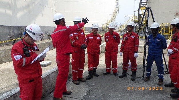 Kegiatan diselenggarakan secara online Zoom selama 3 hari dan praktek lapangan offline 2 hari yang bertempat di Vopak Terminal Jakarta pada tanggal 7 – 8 September 2023 dan batch 2 pada tanggal 21 – 22 September 2023 Pelatihan diselenggarakan bertujuan untuk memberikan pengetahuan dasar bekerja secara aman di ruang terbatas/tertutup dan melaksanakan prosedur kerja sesuai dengan program memasuki ruang terbatas/tertutup dalam rangka pencegahan kecelakaan kerja, serta kegiatan keselamatan kerja lainnya.